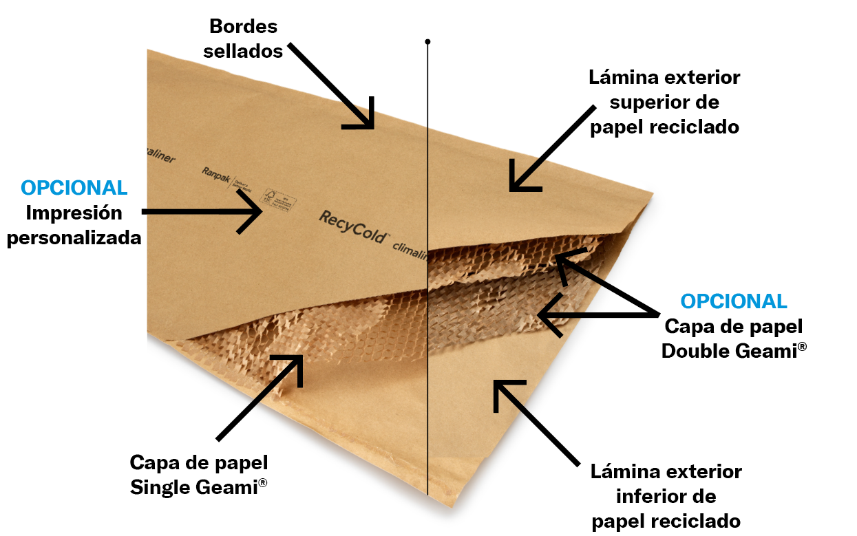 El poder aislante del papel protege los productos sensibles a la temperatura durante el transporte usando el RecyCold® climaliner™. Un revestimiento térmico de papel que protege de las fluctuaciones de temperatura a productos congelados, refrigerados y a temperatura ambiente hasta 48 horas.